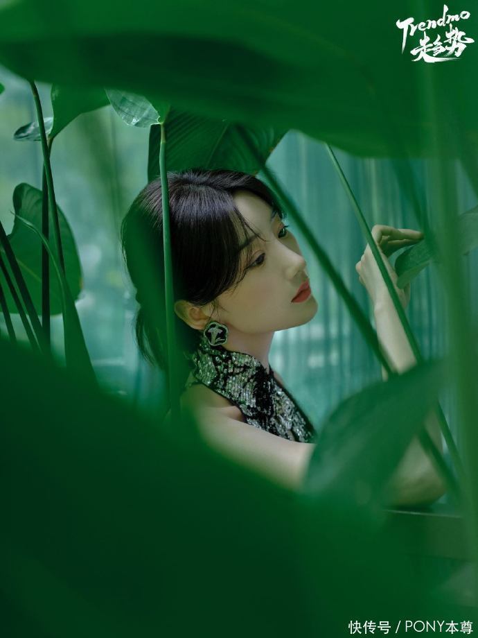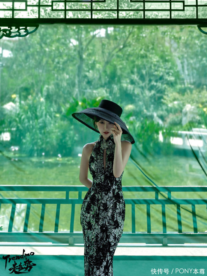 在第二套穿搭中,毛晓彤选择了一款黑色无袖立领新中式旗袍裙,搭配中分低盘发造型,佩戴复古耳环,展现出毛晓彤的优雅气质。