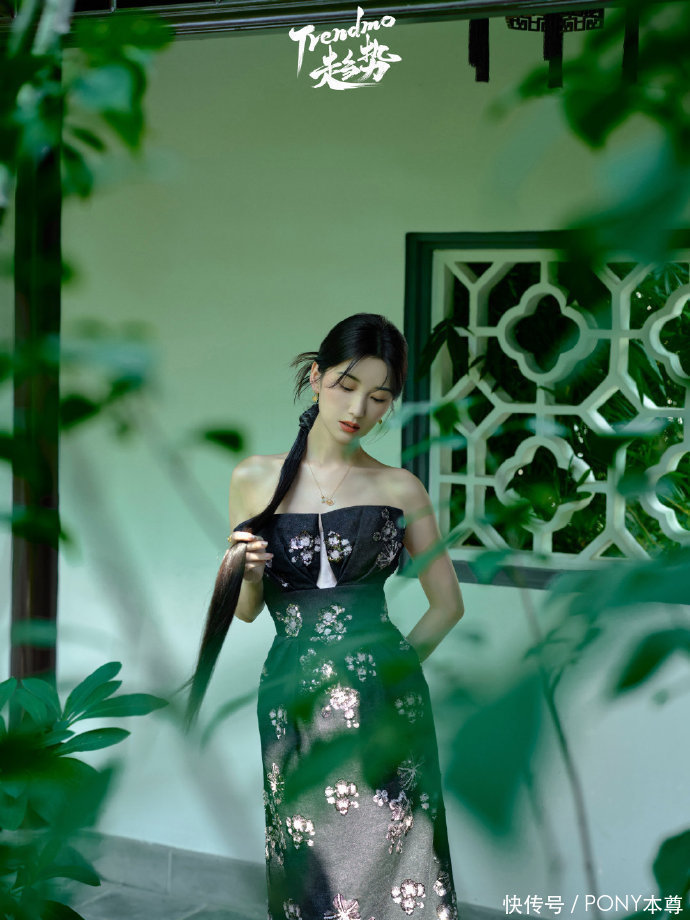 在第三套穿搭中,毛晓彤侧扎马尾辫,温柔如水,选择了一款黑色刺绣印花抹胸裙,搭配小巧的项链耳环,时尚如画中人!