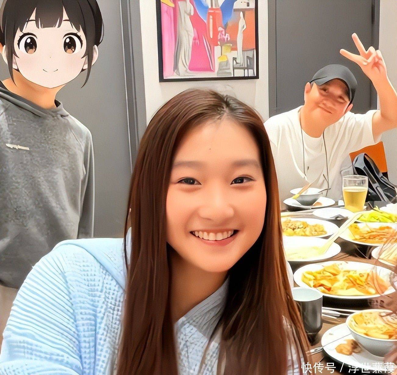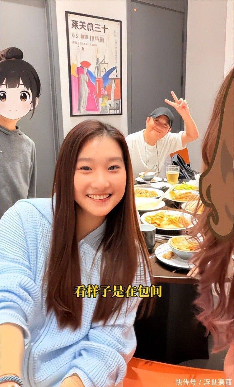 刚踏进店门的三人瞬间成为全场焦点:17岁的爱马打头阵,动作利落推开包间木门,举手投足透着超越年龄的从容;文章牵着小女儿紧随其后,步伐沉稳,神情专注,仿佛整个世界只剩下身边这两个孩子。